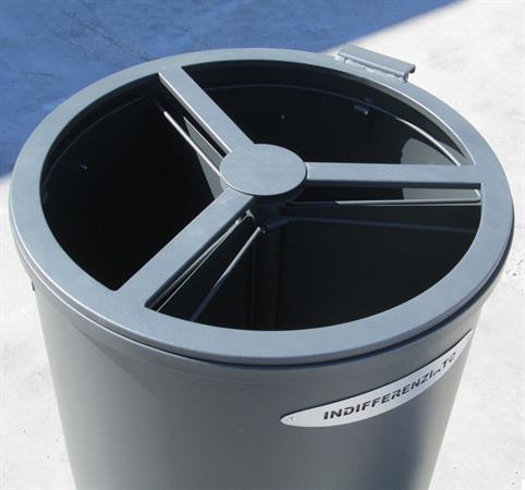 Sistema di svuotamento mediante apertura superiore con ribaltamento del coperchio+divisorio.