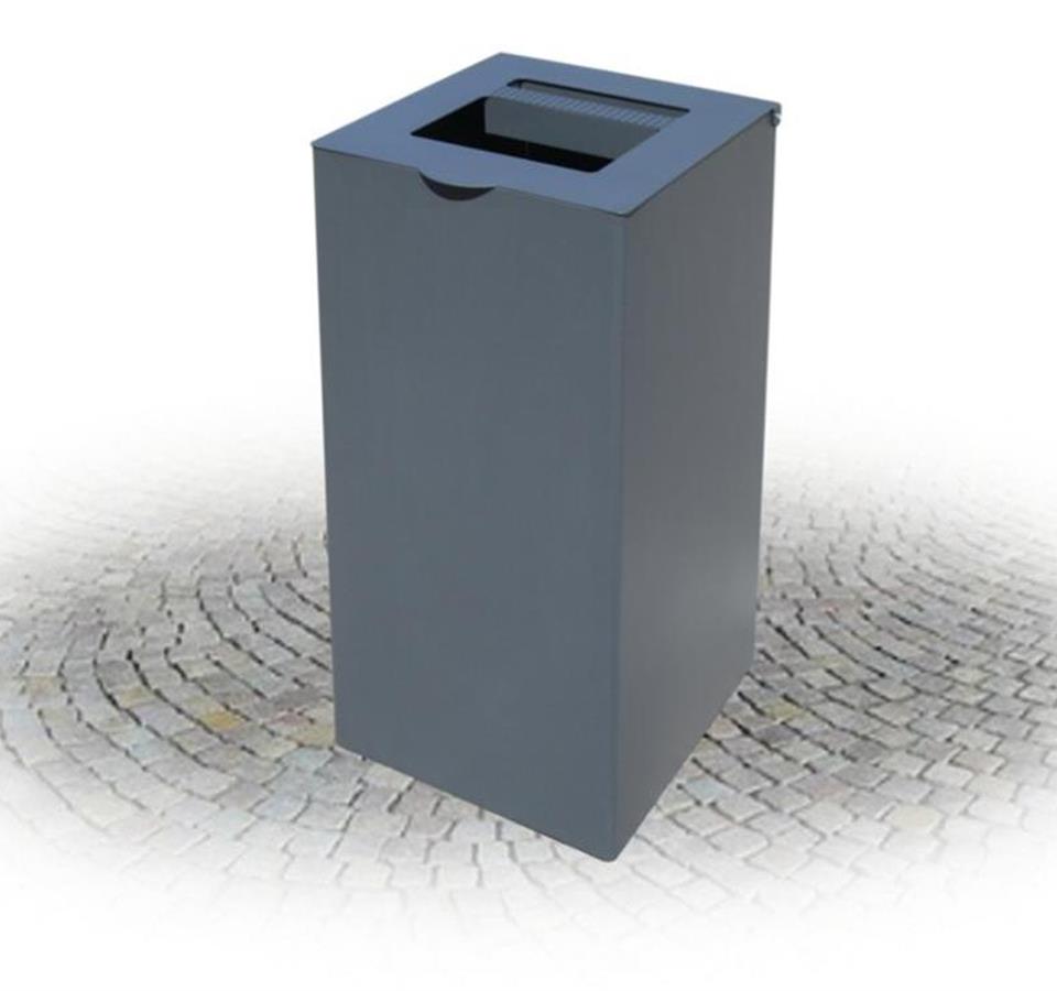 Cestone con postacenere realizzato interamente in lamiera d'acciaio sp. 10/10 zincato e verniciato. Dotato di reggisacco interno e sistema d'apertura superiore per lo svuotamento dei rifiuti.