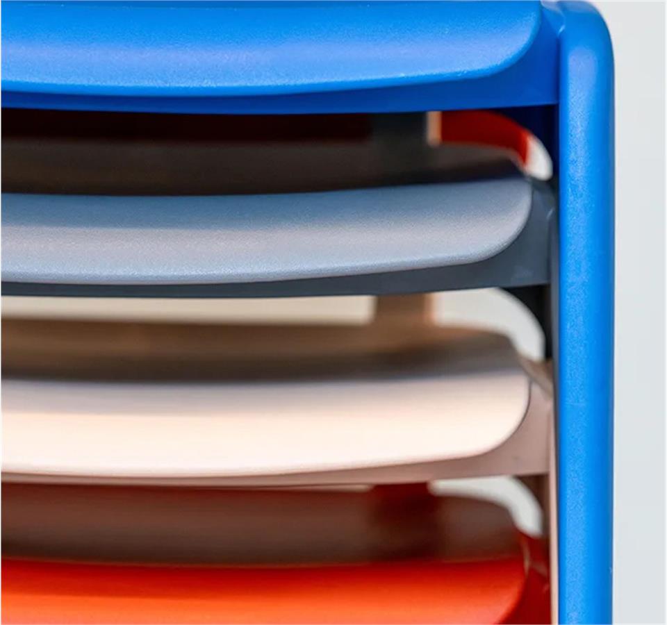 Designer chair suitable for educational or work environments. Lightweight, stain-resistant, anti-static, and easy to clean, it offers the stability and durability of a one-piece product.