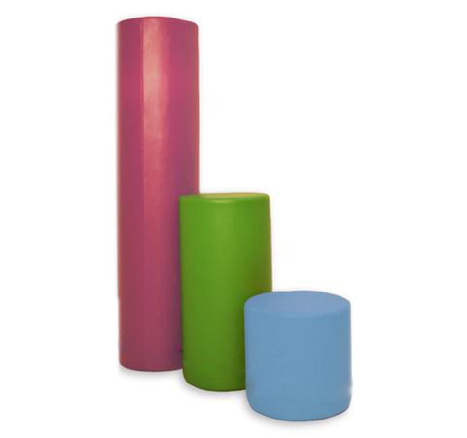 Soft cylinder with class 1 fire-resistant eco-leather covering, phthalate-free, therefore also suitable for children under 3 years of age. Interior 100% foam rubber with a density of 21 kg/m³.