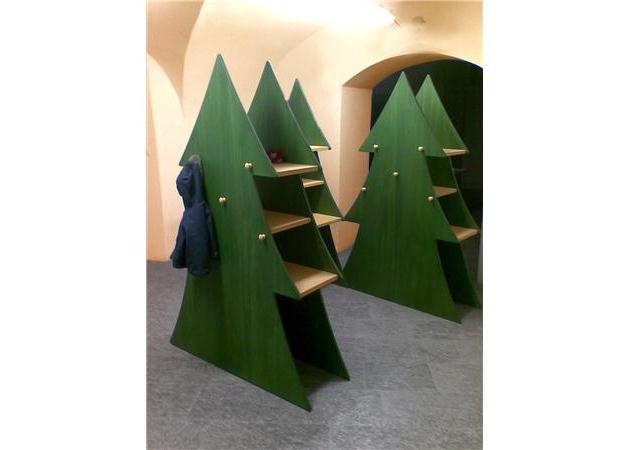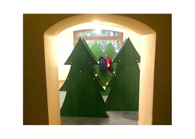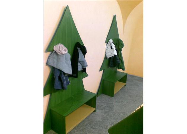 In questo spazio, situato nel centro storico del Comune di Bormio (SO) è stato studiato uno spogliatoio su misura. Si è pensato a creare degli elemnti appendiabito e portascarpe elaborando la forma di un pino di montagna, così da richiamare le origini del luogo e rendere la vetrina dell'asilo un luogo di richiamo per i passanti. Le strutture sono state realizzate in legno con ripiani intermedi in acciaio traforato. Colorazioni e forme sono state pensate e realizzate dai nostri progettisti dallo