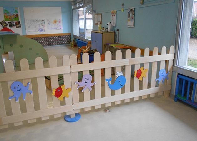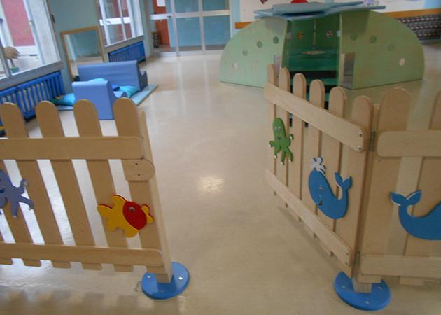 Staccionate divisorie in legno decorato per delimitare spazi, lasciando aperta la creatività.