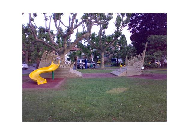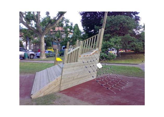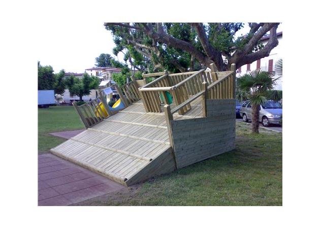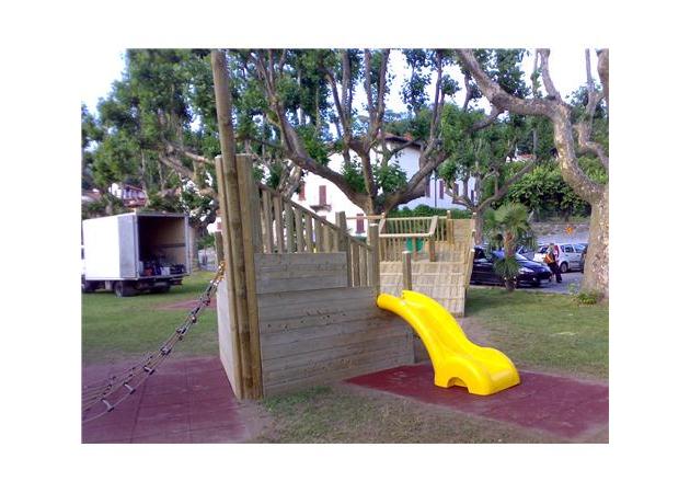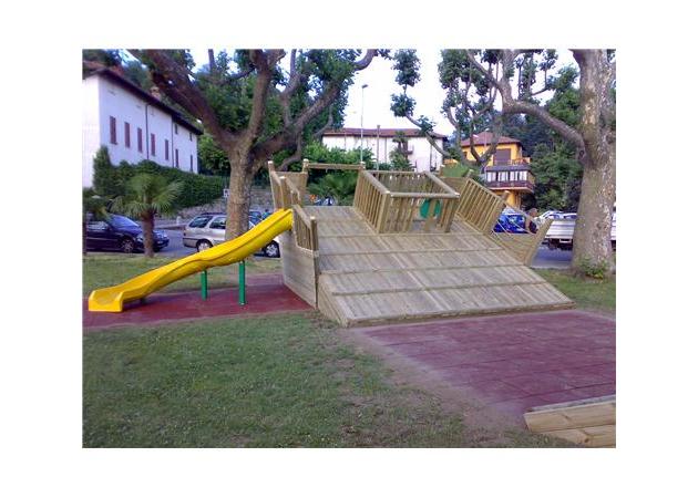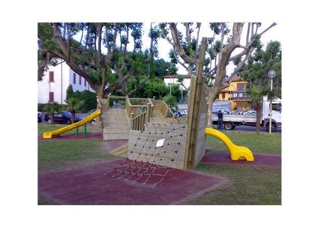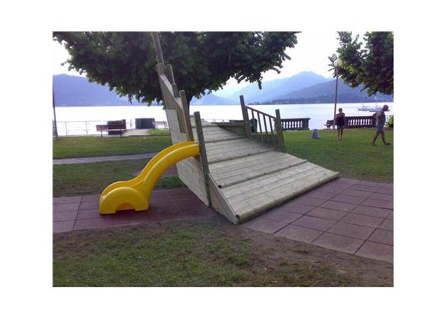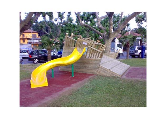 Realizzazione e posa in opera di un castello a tema barca, con sottostante pavimentazione antitrauma di sicurezza.
