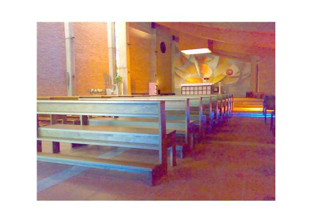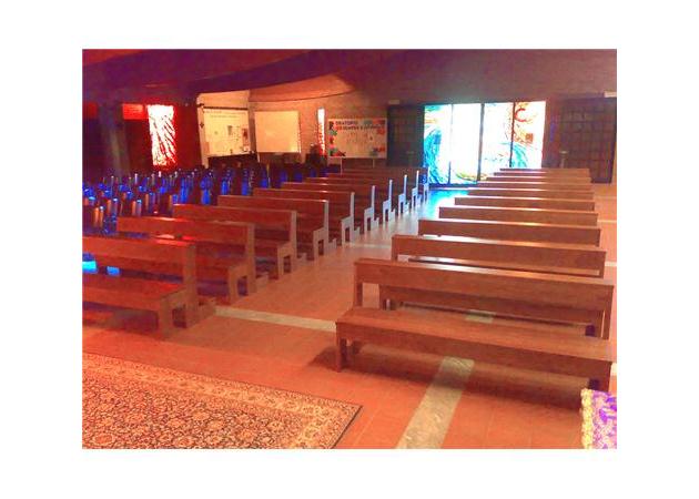 Disegno e realizzazione panche per la chiesa parrocchiale, interamente in legno massiccio, di dimensioni variabili a seconda delle esigenze. Seguendo il progetto dall'idea alla realizzazione, possiamo soddisfare le esigenze più particolari ed articolate