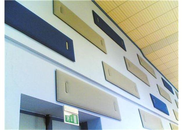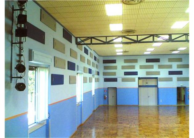 Intervento di insonorizzazione all'interno della palestra dell'oratorio di Malnate (VA), attraverso l'uso di pannelli insonorizzanti a parete. Giocando anche con i colori abbiamo ottimizzato l'ambiente acustico rendendo lo spazio al tempo stesso meno caotico e più vivace.