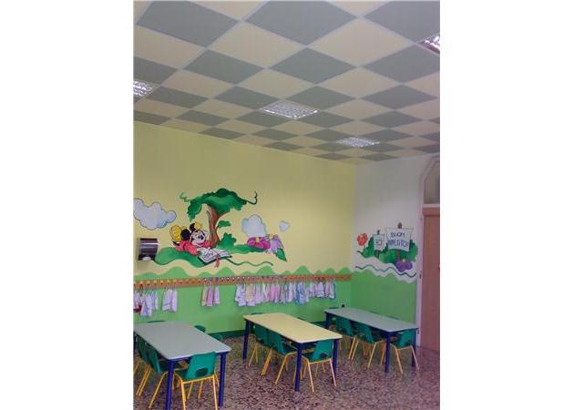Il problema dell'eccesso di rumore nelle aule scolastiche è stato risolto intervenendo sulla soffittatura, con l'ausilio di speciali elementi per il fonoassobimento usati come pannelli per la controsoffittatura.