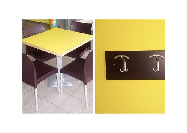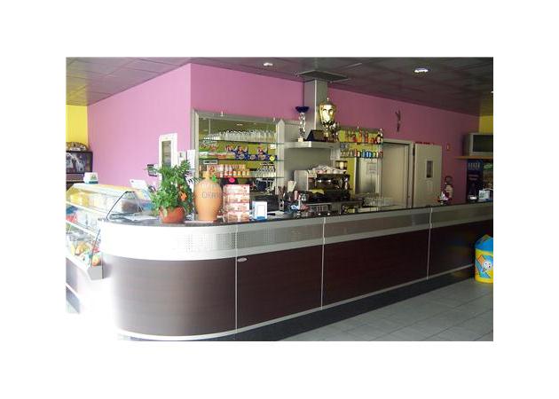 Bancone studiato su misura per questo bar, a cui e' stato dato un occhio di riguardo per la scelta di colori e materiali, per rendere allegro e vivo l'ambiente.