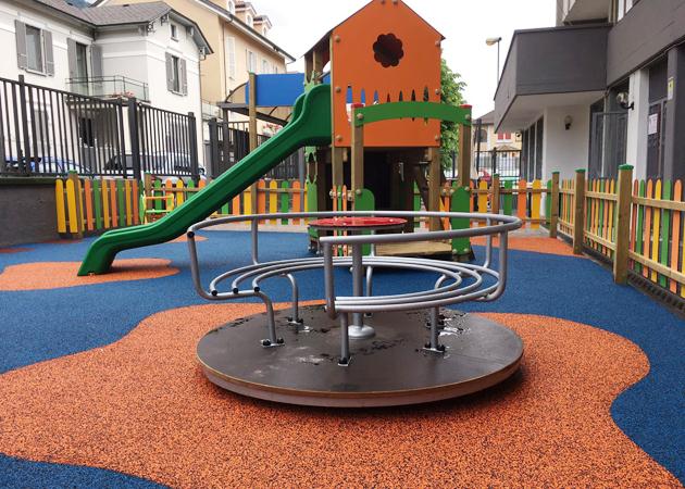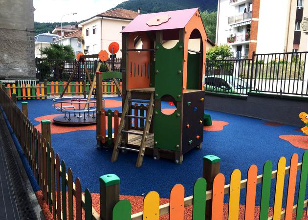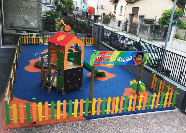 Gli spazi urbani adibiti a parco giochi sono sempre meno e spesso malridotti. Il "pacco giochi" di Aurora sito a Domodossola è un perfetto esempio di come si possa rendere un'area inutilizzata uno splendido luogo di gioco e divertimento. Grazie ai nostri arredi per esterno ed alla scelta di colata in opera come pavimentazione antitrauma il cortile è stato completamente rivitalizzato.