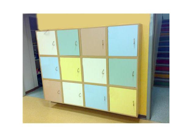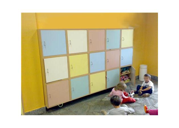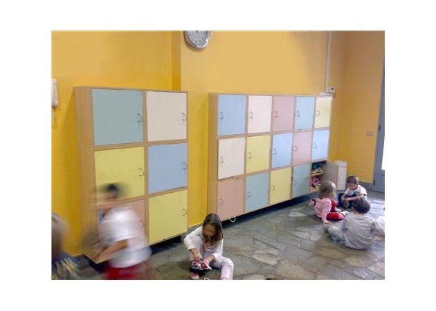 In questo caso l'angolo spogliatoio è stato realizzato assegnando ad ogni bambino un armadietto.