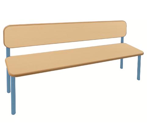 Panca classica, lunghezza 130 cm, con struttura in acciaio del diametro di 30 mm, verniciata con polveri epossidiche, totalmente stondata, con svasatura per viti, sedili e schienali in varie finiture bordati in ABS.