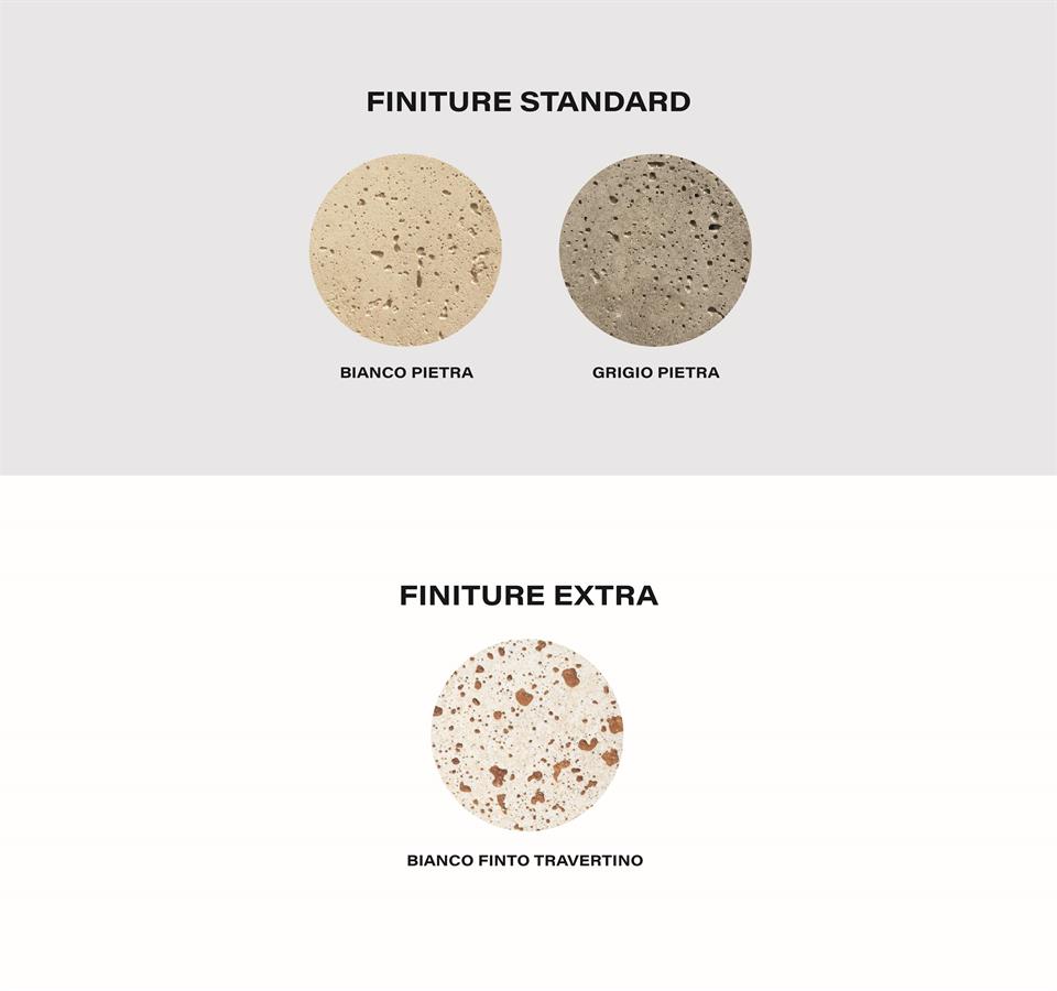 - Standard: bianco effetto pietra, grigio effetto pietra.