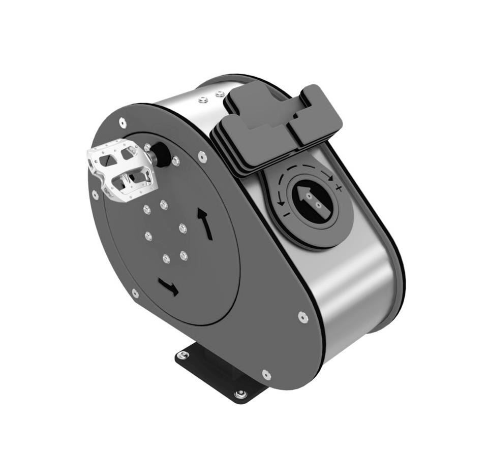 Innovativa stazione Avvolgitore a pedale a resistenza, realizzata con materiali di alta qualità quali acciaio inox, HDPE e verniciatura a polvere che garantiscono la resistenza alla corrosione, ai danni meccanici e agli atti vandalici.