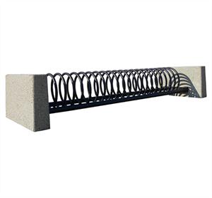 Portabici costituito da un elemento a spirale saldato a due tubolari orizzontali tondi.